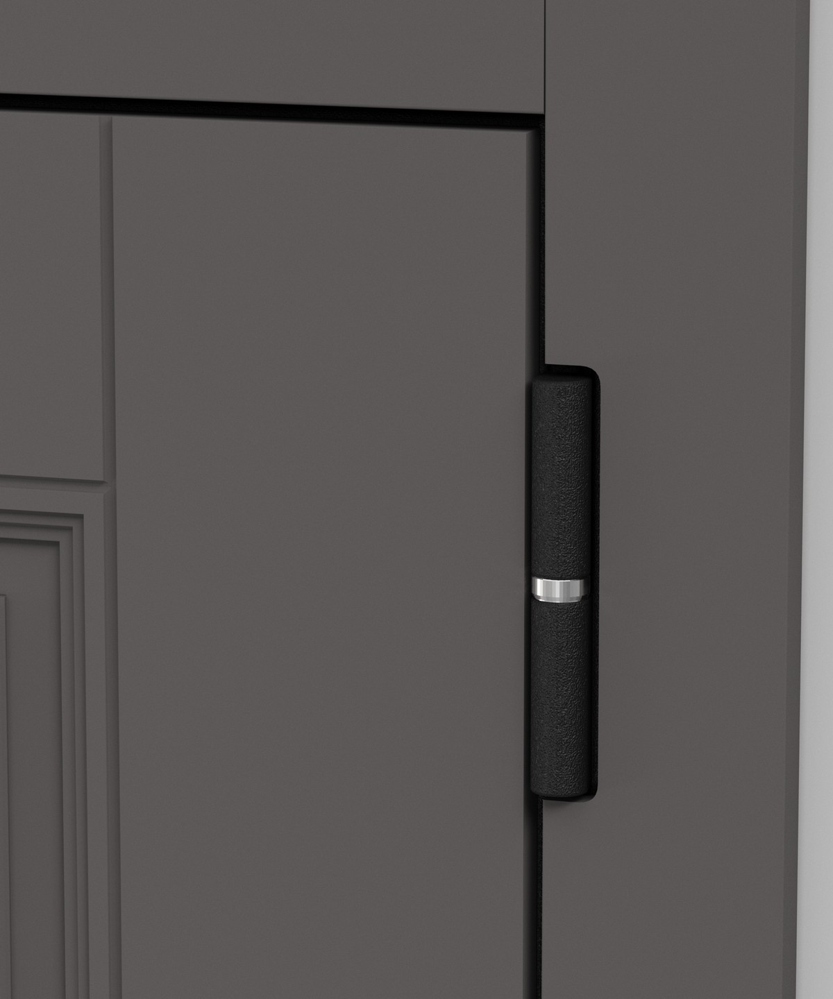 - Внешняя отделка: фактурный мдф в оттенке Грей нубук — элегантное решение для входной зоны.